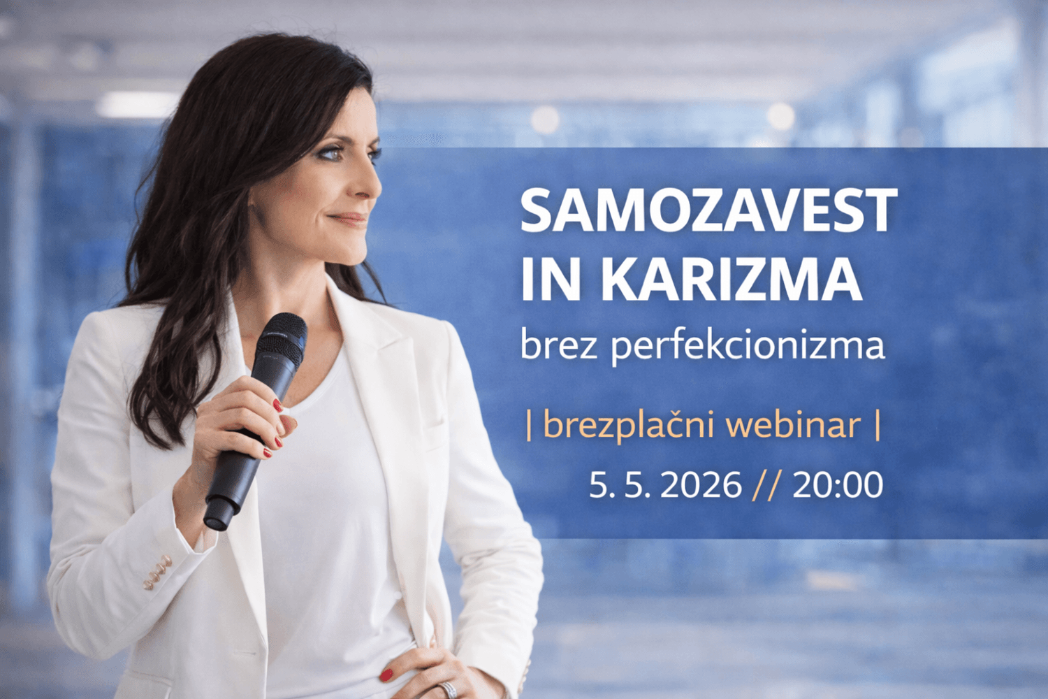 Brezplačni spletni seminar za ženske, ki želijo bolj samozavestno nastopati, govoriti jasno in biti vidne brez pritiska, da morajo biti popolne.